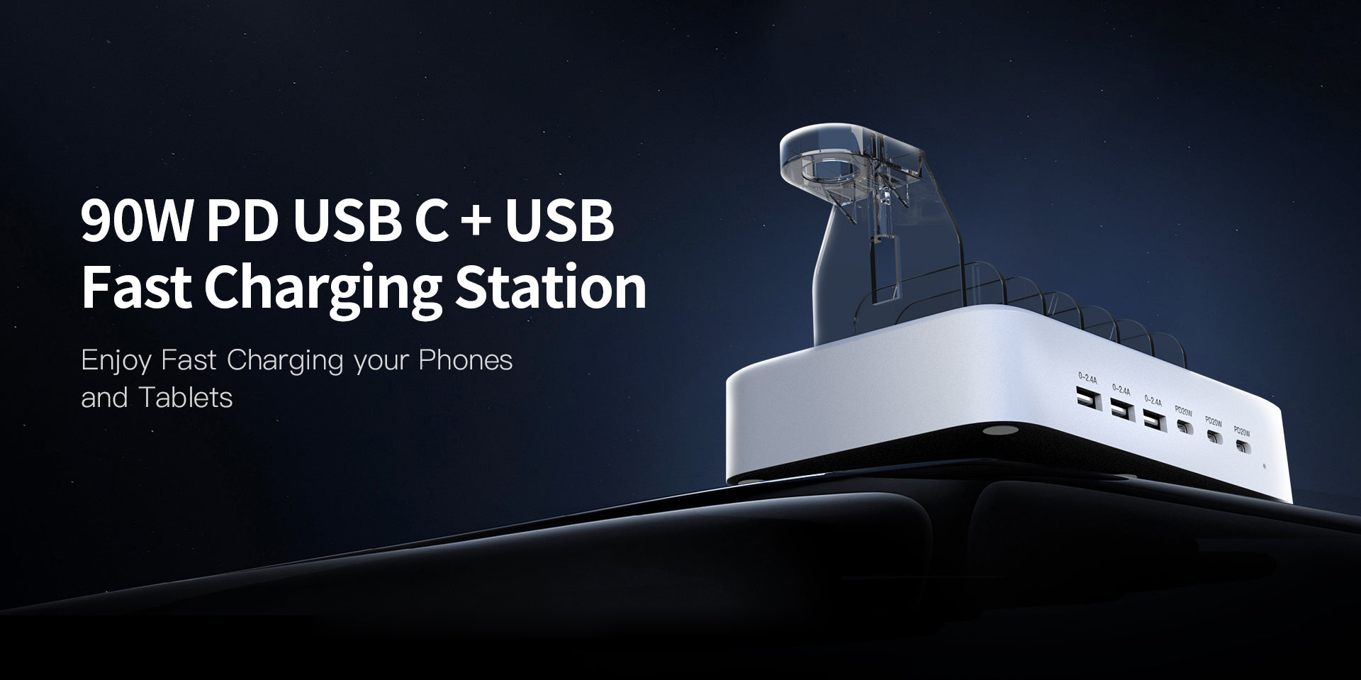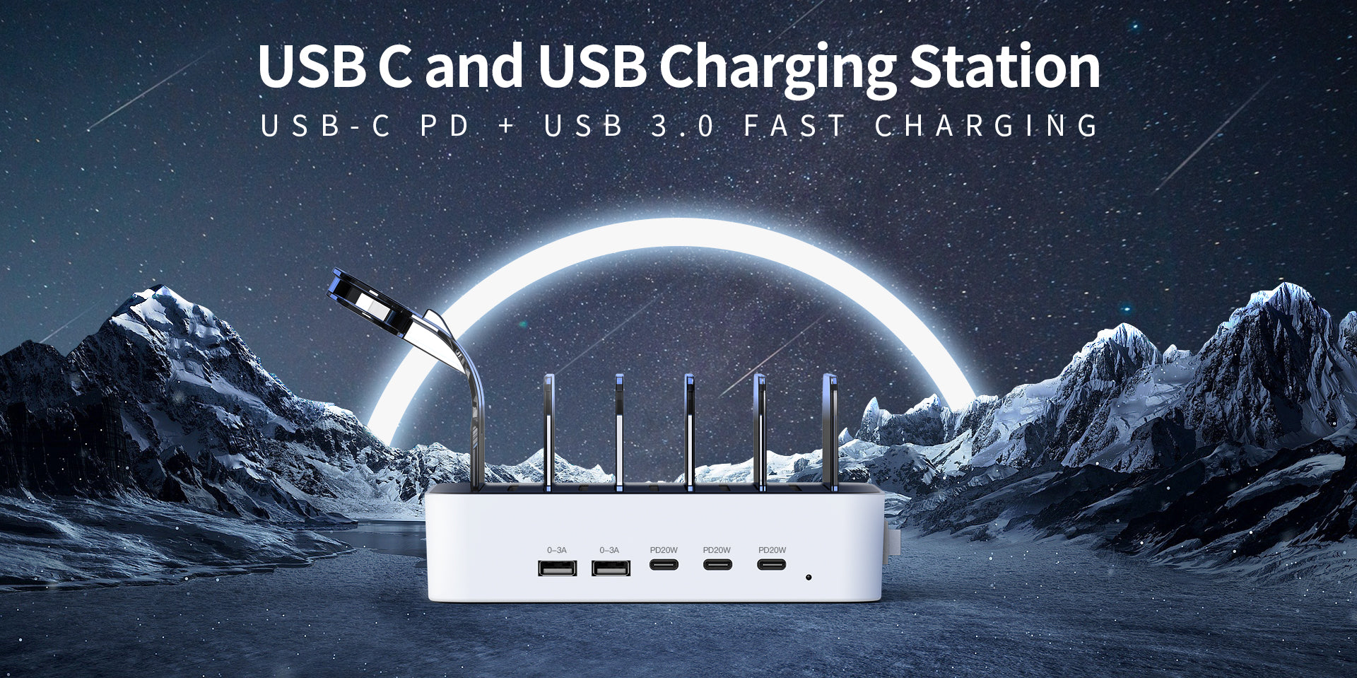 120W 6-Port USB-C Charging Station: 4 PD Fast Charging Ports, Dock for Apple iPad iPhone Android